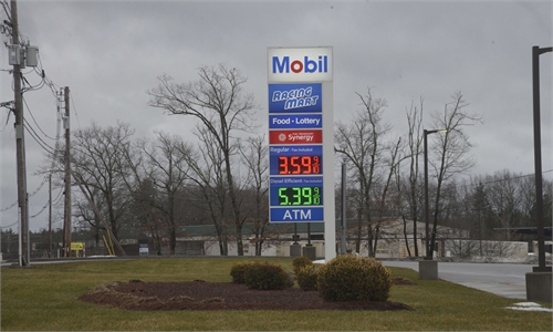 A sign at a gas station in Lancaster, Massachusetts shows the surge in fuel prices on March 16, 2026, caused by the US-Israel war against Iran and the slowing of oil tanker traffic in the Persian Gulf.